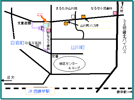 住宅街に入り坂を上りきった角地です。